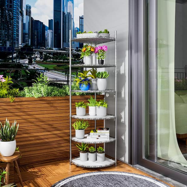 6-Tier Outdoor Garden Garage Silver Iron Storage Shelf Shelves Organizer Wire Shelving Unit Plant Stand Chrome