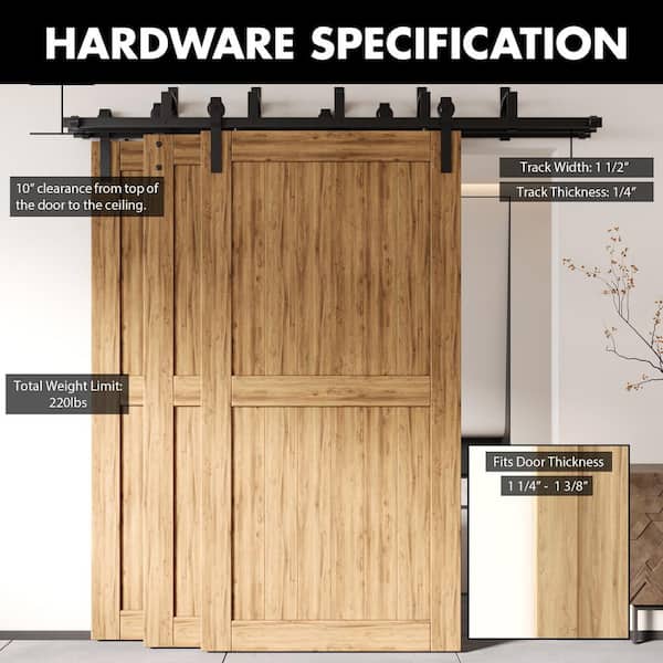 6 ft./72 in. Black Rustic Inverted Bent Triple Track Bypass Sliding Barn Door Track and Hardware Kit for Triple Doors