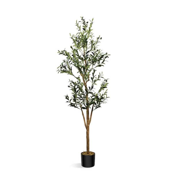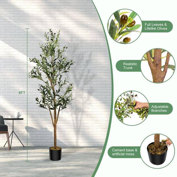 6 ft. Artificial Olive Tree Fake Plants, Silk Plants with Natural Wood Trunk and Lifelike Fruits Faux Plants