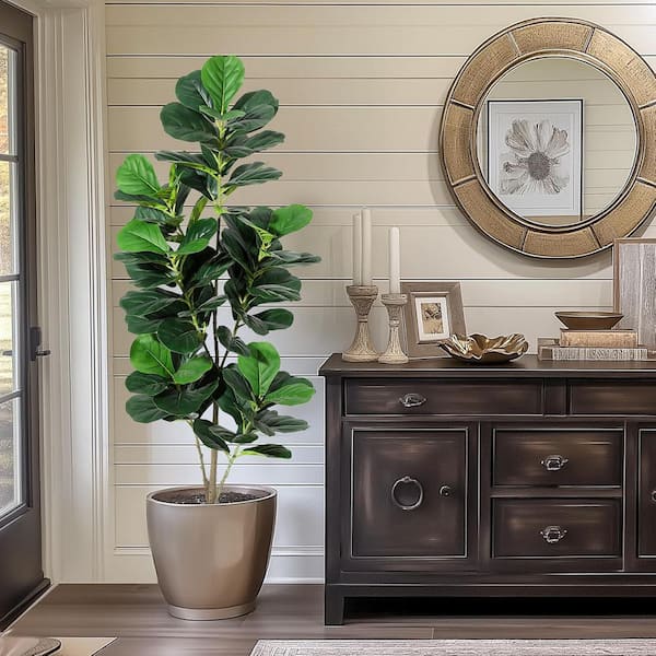 6 ft. Fiddle Leaf Fig Artificial Tree Faux Floor Plant with Black Planter Pot, Potted Fake Fiddle Leaf Fig Tree