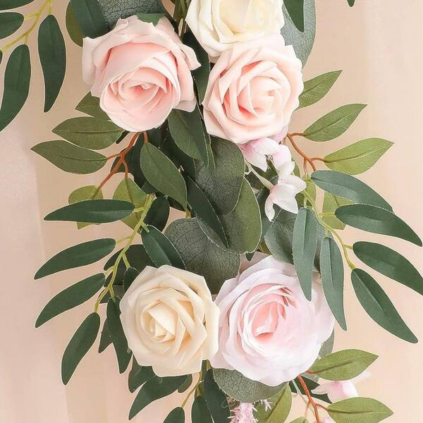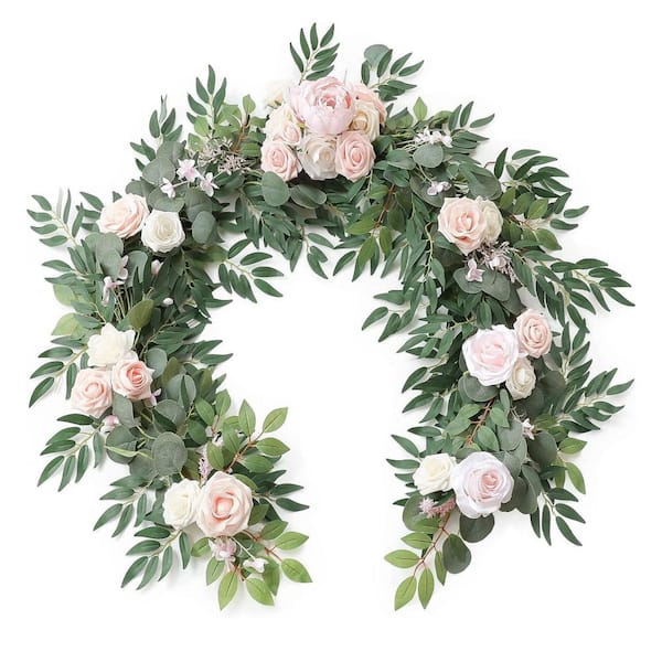 6 ft. Pink Artificial Rose Eucalyptus Garland with Flowers Fake