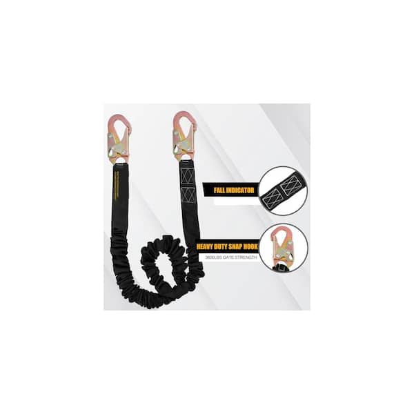 6 ft. Retractable Safety Harness Lanyard Fall Protection Climbing Strap with Shock Absorbing Dual Snap Hook