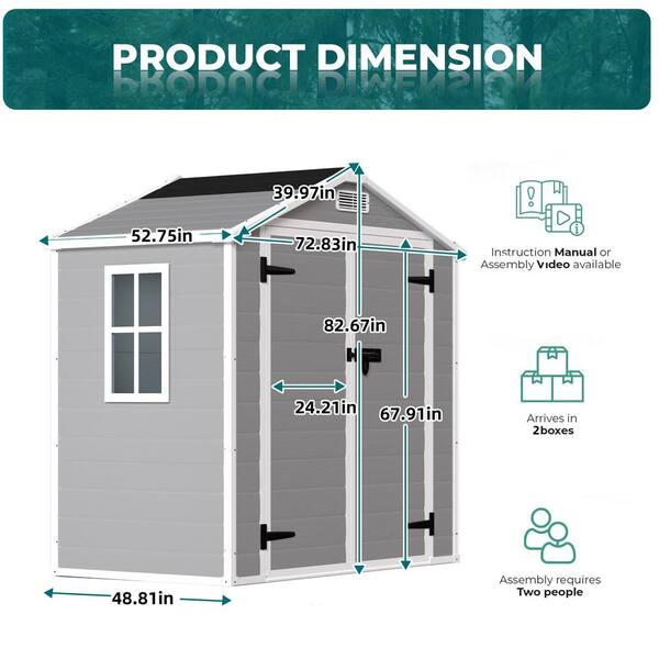 6 ft. W x 4.4 ft. D Plastic Weather Resistant Storage Shed with Light Grey Resin Floor for Garden, Backyard (26 sq. ft.)
