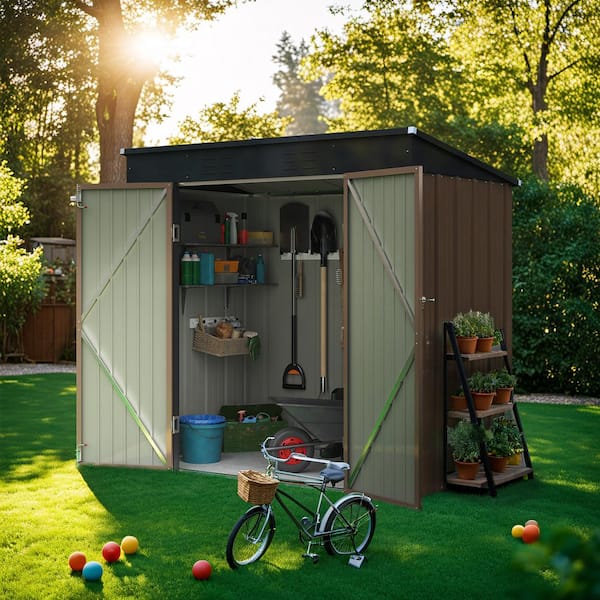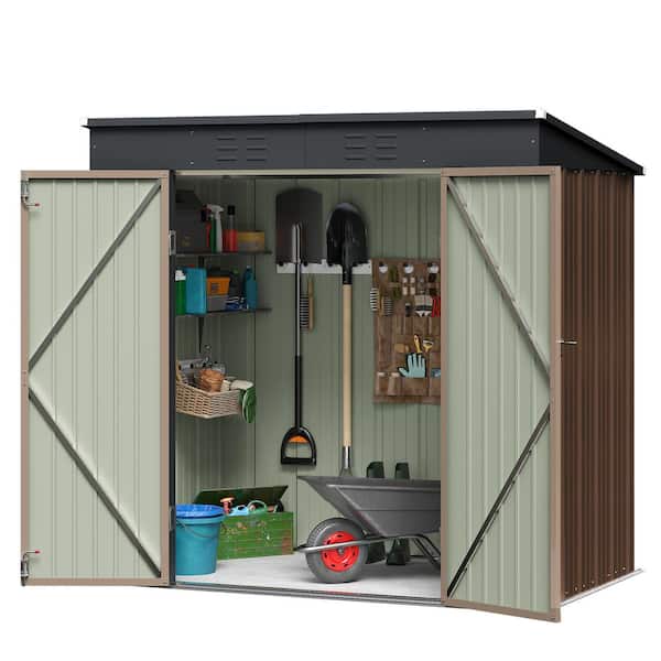 6 ft. W x 4 ft. D Brwon Slanted-Roof Shed Galvanized Metal Shed for Outdoor Storage 24 sq. ft.
