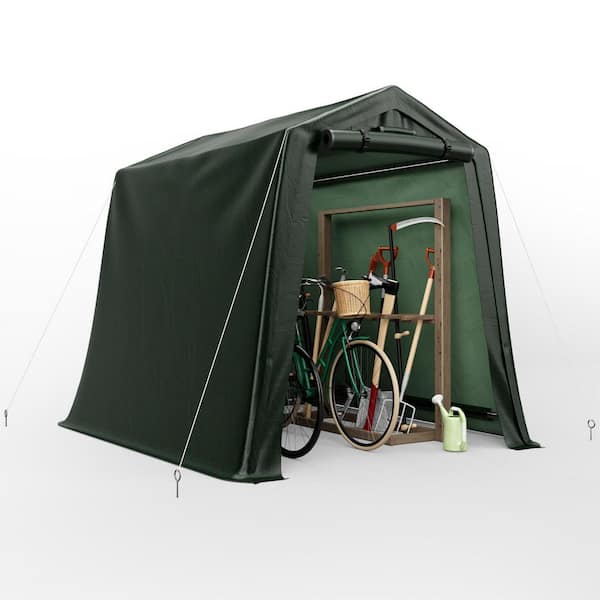 6 ft. W x 6 ft. D x 7 ft. H Steel Frame Polyethylene Green Carports Portable Garage/Shed