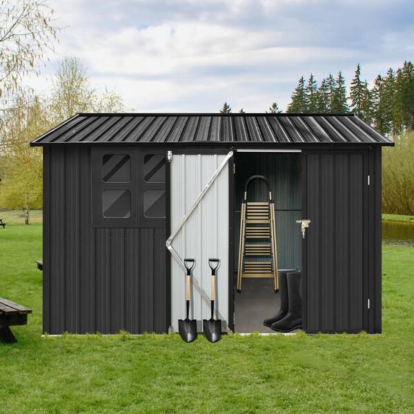 6 ft. W x 8 ft. D Metal Outdoor Storage Shed, Garden Sheds with Window, for Garden Tools, Equipment, Black (48 sq. ft. )