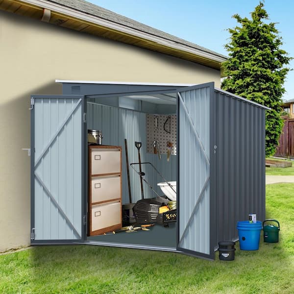 6 ft. W x 8 ft. D Metal Outdoor Storage Shedwith Lockable Double Doors, Metal Lean to Shed(46.8 sq. ft. )