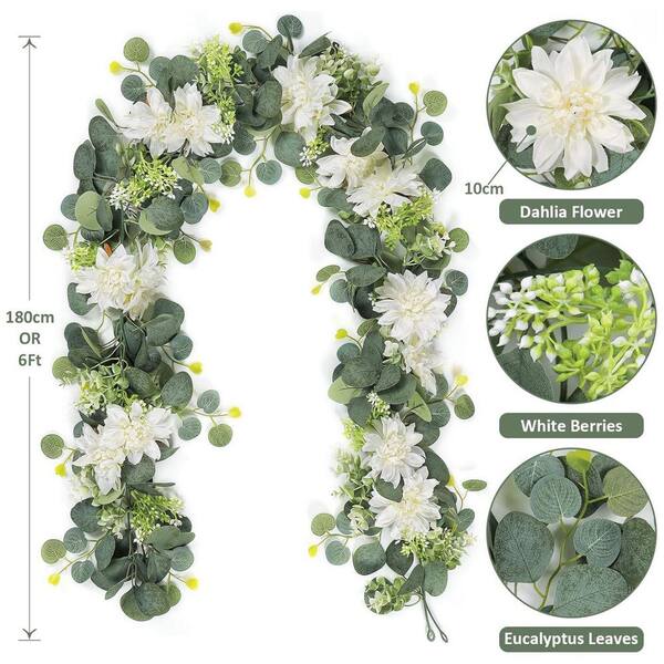 6 ft. White Artificial Dahlia Flower Garland 2 Pack
