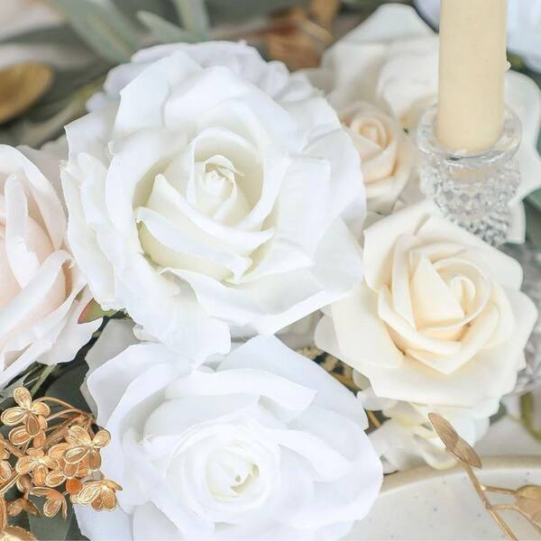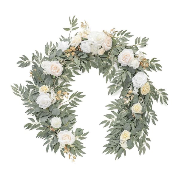 6 ft. White Artificial Rose Eucalyptus Garland with Flowers Fake