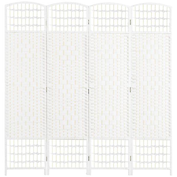 6 ft. White Paper Folding Outdoor Privacy Screen, 4-Panel Wave Fiber Hinged Freestanding Partition Wall Divider for Room