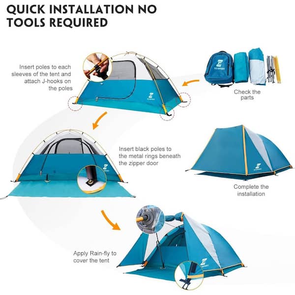 6 ft. x 3.75 ft. Camping Tent 2 Person, Aluminum Poles Tent with Bike Shed and Rainfly-Portable Dome Tents for Camping