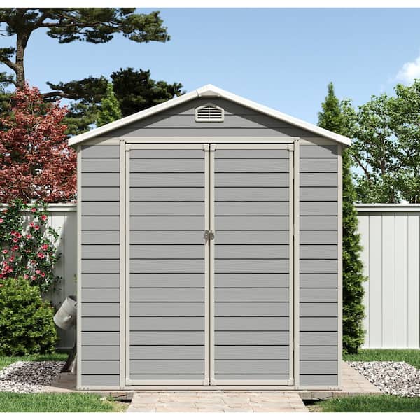 6 ft. x 8 ft. Plastic Storage Resin Shed with Floor Foundation, Air Vents for Patio, Grey (48 sq. ft. Coverage Area)