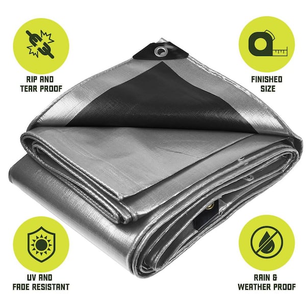 6 ft. x 8 ft. Silver/Black 8 Mil Heavy Duty Polyethylene Tarp, Waterproof, UV Resistant, Rip and Tear Proof