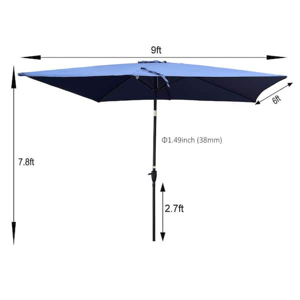 6 ft. x 9 ft. Patio Market Umbrella Outdoor Waterproof Umbrella with Crank & Push Button Tilt without Flap in Navy Blue