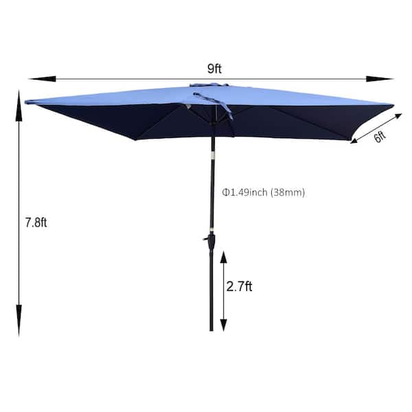 6 ft. x 9 ft. Patio Market Umbrella Outdoor Waterproof Umbrella with Crank and Push Button Tilt Without Flap in Blue
