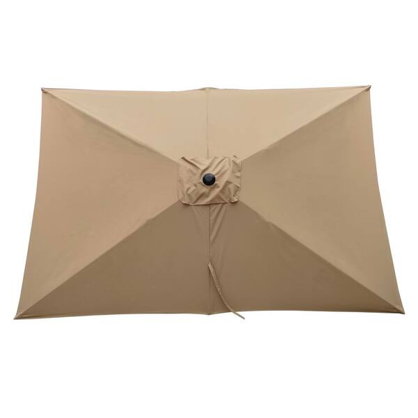 6 ft. x 9 ft. Steel Rectangular Market Outdoor Patio Umbrella with Push Button Tilt and Crank in Brown