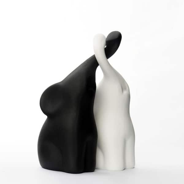 6 in. 2 in. Black White (Set of 2) Resin Loving Elephant Statue Figurine Elephant Ring Holder Elephant Ring Holder