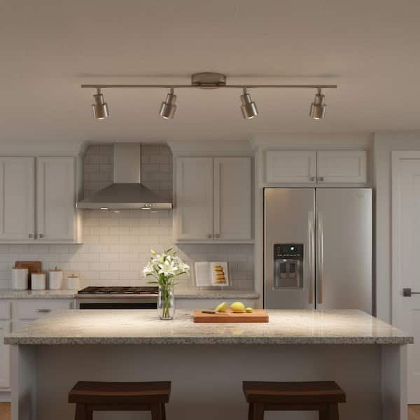 6 in. 4-Light Brushed Nickel Integrated LED Flush Mount Ceiling and Wall Light