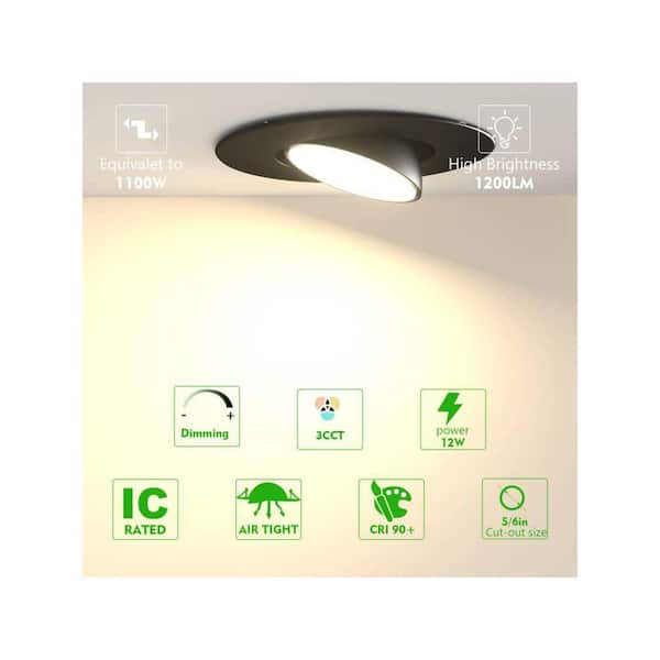 6 in. Canless Black Round Gimbal Integrated LED Recessed Light Kit 3 CCT Selectable Dimmable (12-Pack)