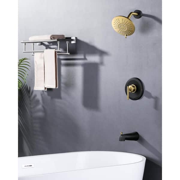6 in. Shower System with Bathtub Spout-Shower and Thermostatic Valve in Black Gold