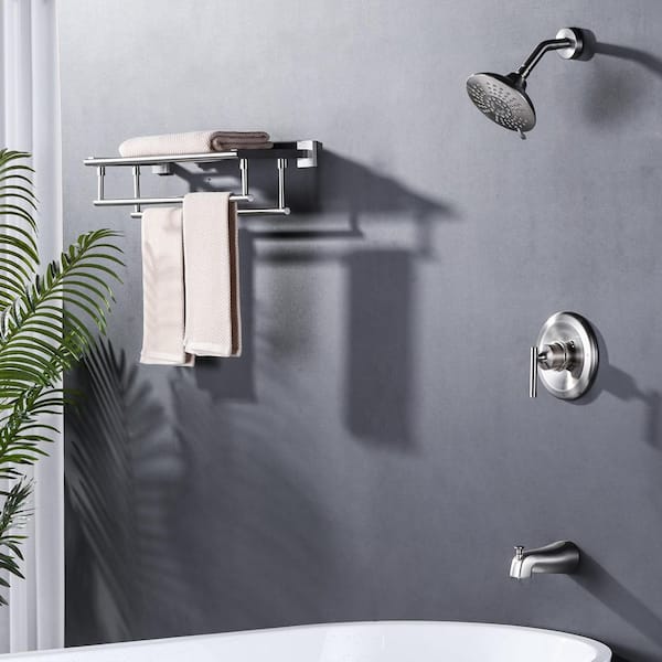 6 in. Shower System with Bathtub Spout-Shower and Thermostatic Valve in Brushed Nickel