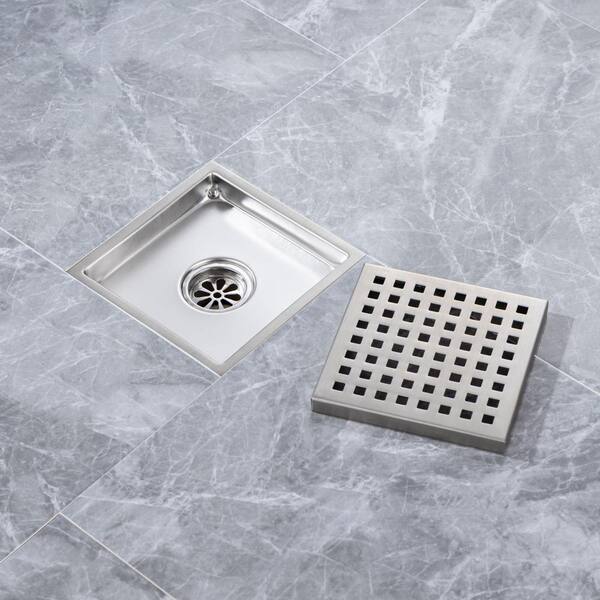 6 in. Stainless Steel Square Shower Drain in Brushed Nickel