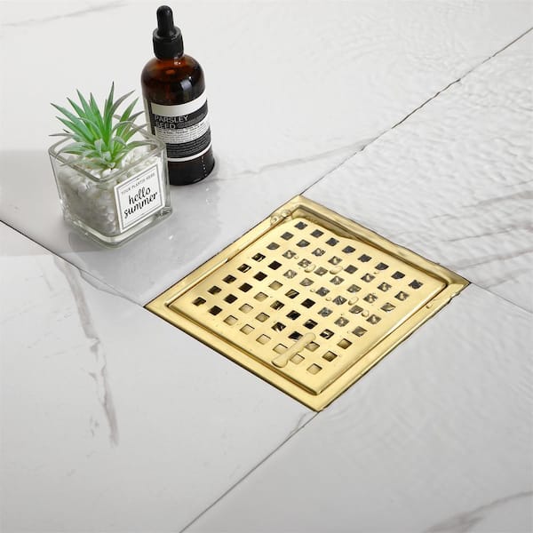 6 in. Stainless Steel Square Shower Floor Drain with Strainer in Matte Black