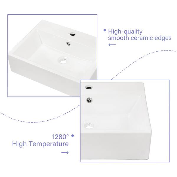 6 in Wall-Mounted Rectangular Bathroom Sink in White Ceramic