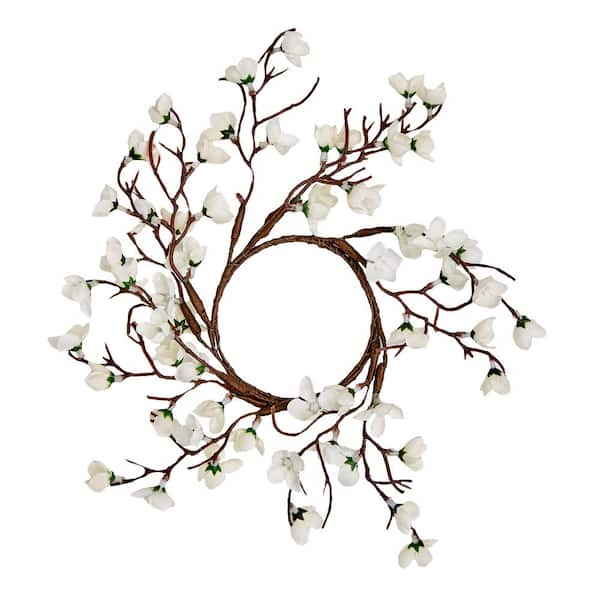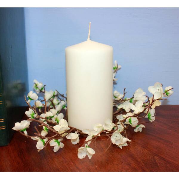 6 in. White Artificial Spring Flower Pillar Candle Ring (Set of 2)