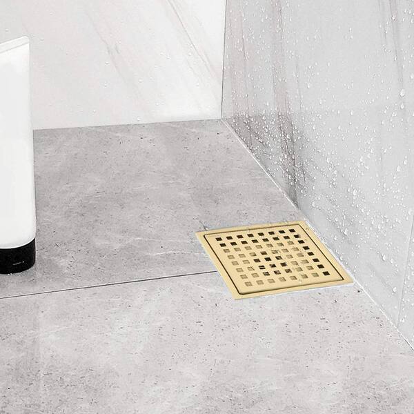 6 in. x 6 in. Stainless Steel Square Shower Floor Drain in Brushed Gold