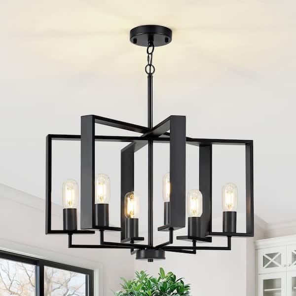 6 light Black Modern Industrial Geometric Metal Chandelier for Kitchen Island with no bulbs included