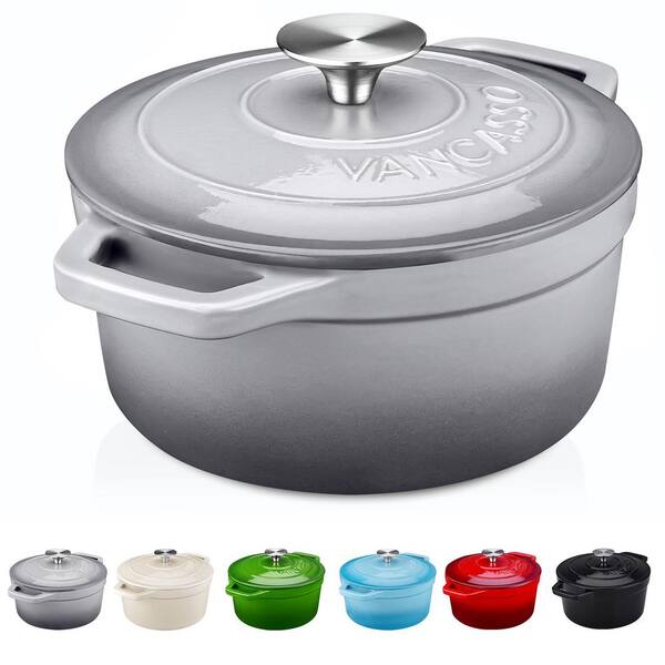 6 qt. Round Cast Iron Nonstick Dutch Oven in Gray with Lid