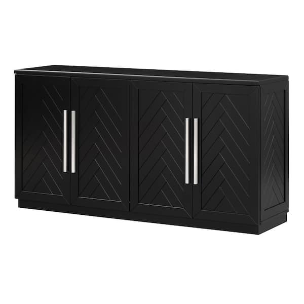 60.00 in. W x 16.00 in. D x 32.00 in. H Black Linen Cabinet Sideboard with 4 Doors and Adjustable Shelves