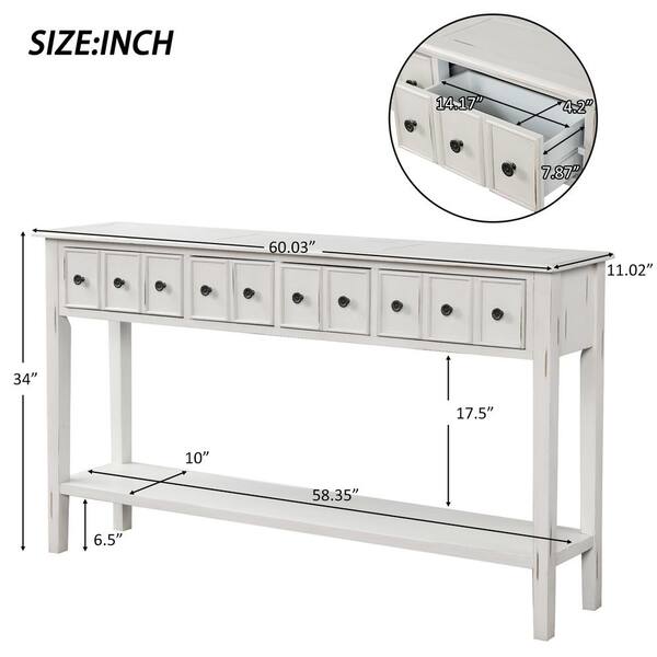 60.03 in. W x 11.02 in. D x 34 in. H Bathroom White Linen Cabinet