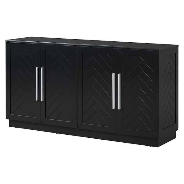 60.10 in. W x 15.80 in. D x 32 in. H MDF Ready to Assemble Floor Kitchen Cabinet in Black with Doors