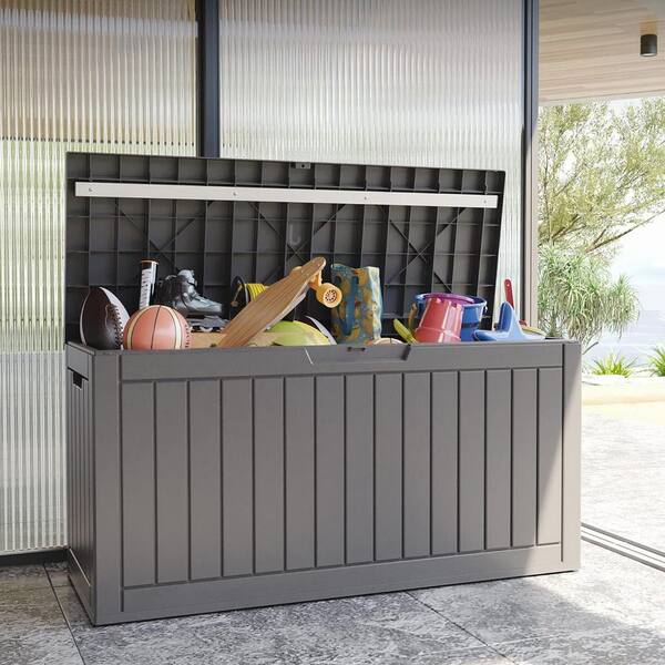 60 Gal. Grey Resin Deck Box Waterproof Lockable UV Resistant