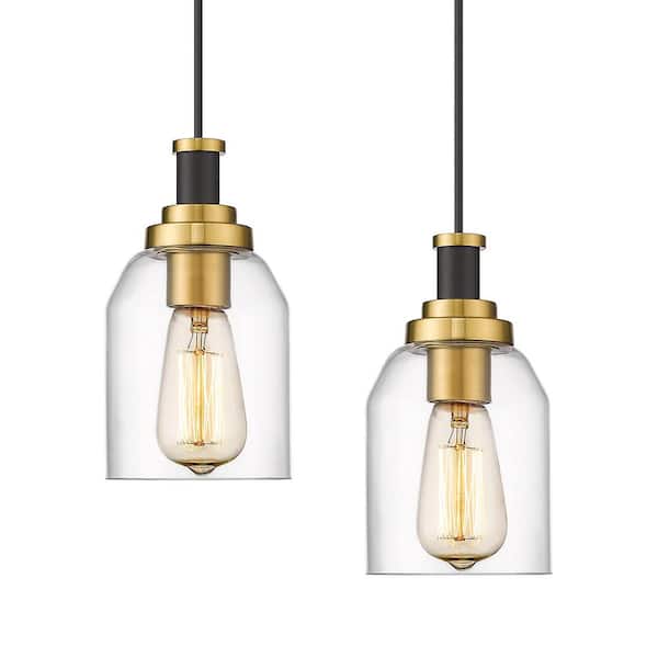 60-Watt 1-Light Black and Gold Finish Shaded Pendant Light with Clear Glass Shade, No Bulbs Included (2-Pack)