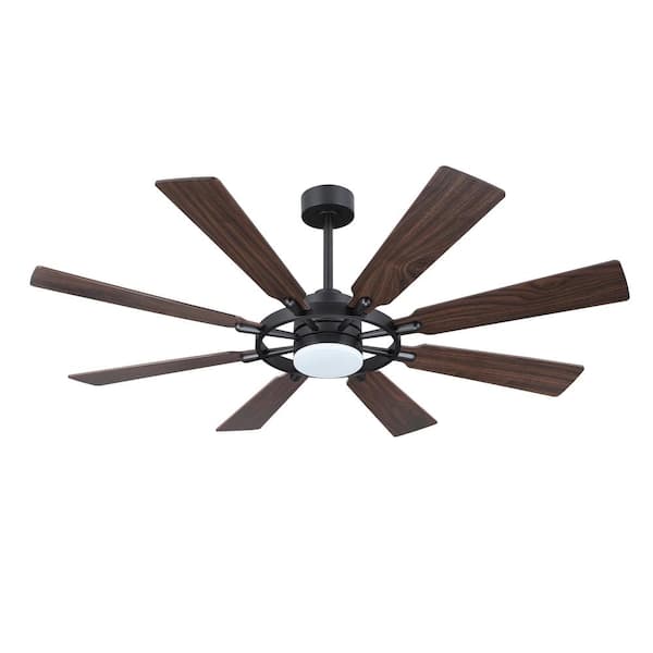 60 in. (5 ft.) 8 Blades LED Indoor Black and Dark Walnut Ceiling Fan with Remote