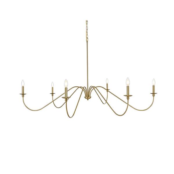 60 in. Home Living 6-Light Satin Gold Chandelier with no Bulbs Included