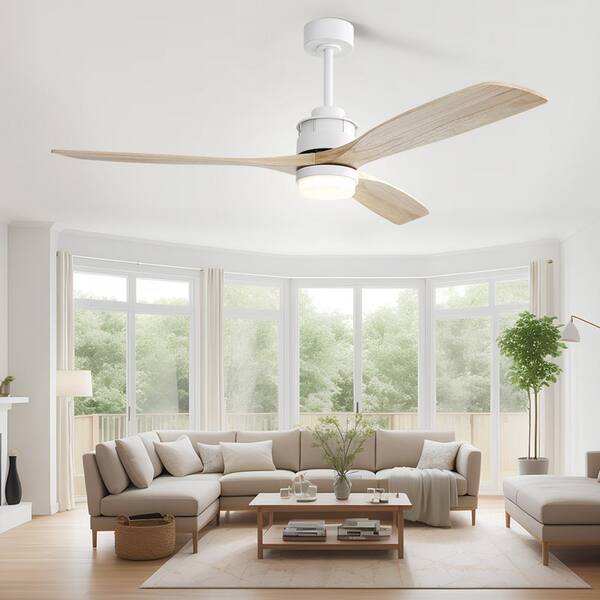 60 in. LED Smart Indoor White Ceiling Fan with LED Light and Remote Control Solid Wood Blade