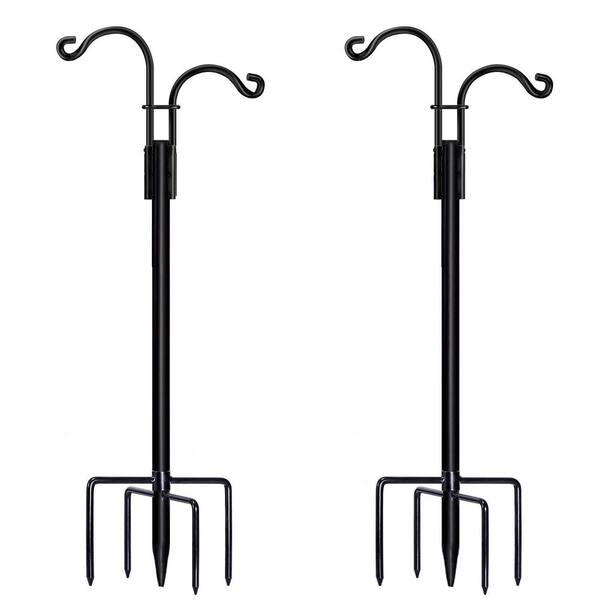 60 in. Metal Heavy Duty Double Shepherds Hooks Pole with 5 Prongs Base for Outdoor, Hummingbird Feeder, 2-Pack
