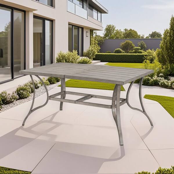 60 in. Outdoor Patio Dining Table for 6, Rectangular Aluminum Patio Furniture Table with Umbrella Hole Metal Patio Table