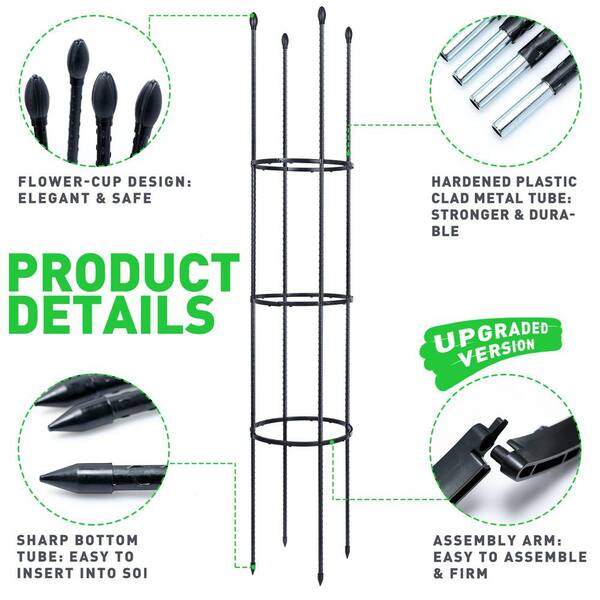 60 in. Tomato Cage Garden Trellis 2 in 1 Plant Cage and Support for Climbing Plants with 30-Pieces Plant Clips (2-Pack)