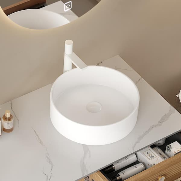 60 in. W Double Sink Freestanding Oak Bath Vanity with White Engineered Stone Top