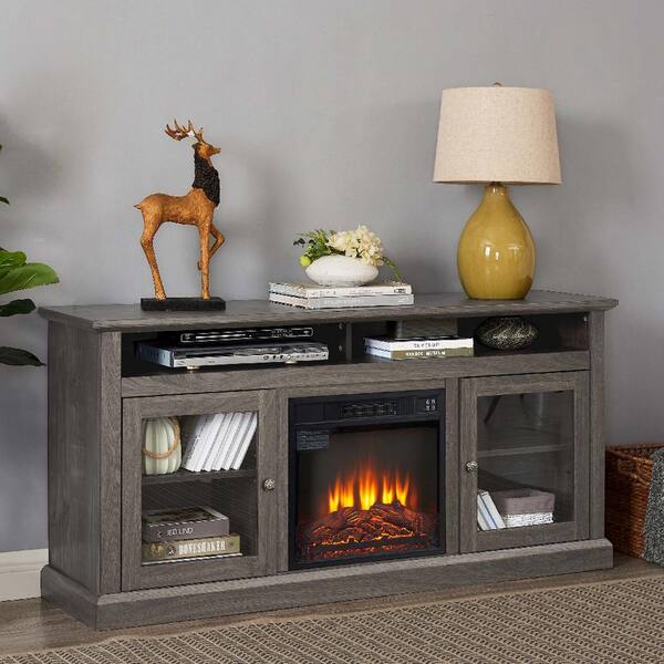 60 in. W x 15.75 in. D x 29 in. H Black Linen Cabinet W/ 18 in. Fireplace Insert & Storage, TV Stand for TV up to 65 in.