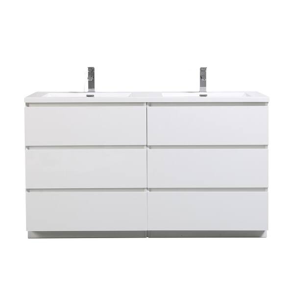60 in. W x 20 in. D x 34 in. H Freestanding Bathroom Vanity in Hight White with White Solid Surface Top and Double Basin