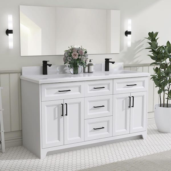 60 in. W x 21.5 in. D x 33.5 in. H Bath Vanity Cabinet Without Top Bathroom Vanity Morden Solid Wood in White
