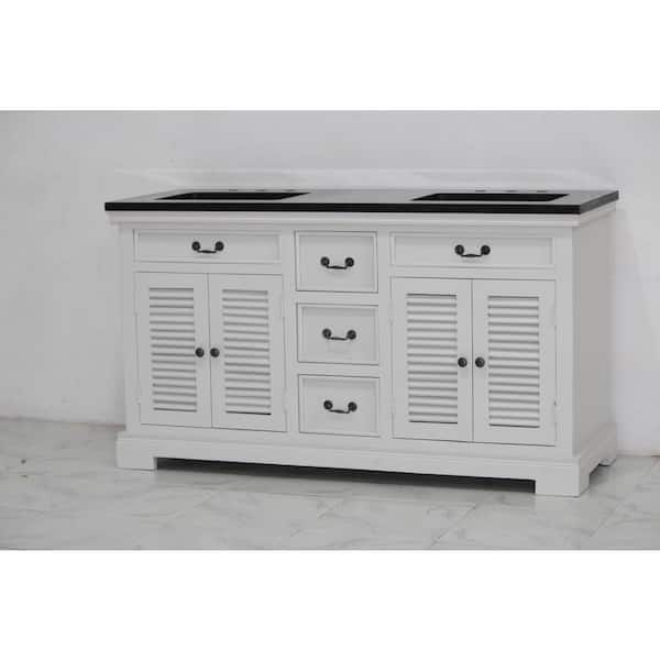 60 in. W x 22 in. D Bath Vanity in White with Granite Vanity Top in Black with White Basin