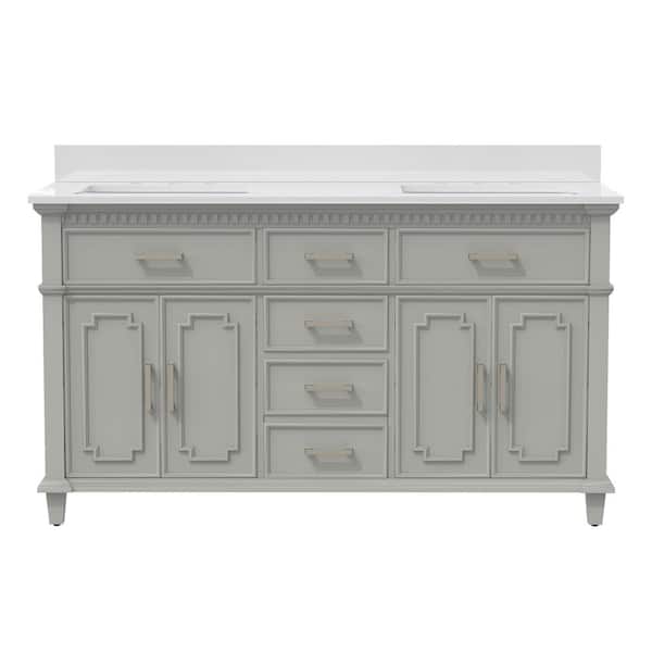 60 in. W x 22 in. D x 38 in. H Bath Vanity in Gray with White Granite Top
