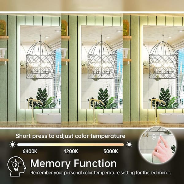 60 in. W x 24 in. H Rectangular Frameless Anti-Fog 3 Color Dimmable Backlit LED Wall Bathroom Vanity Mirror with Light